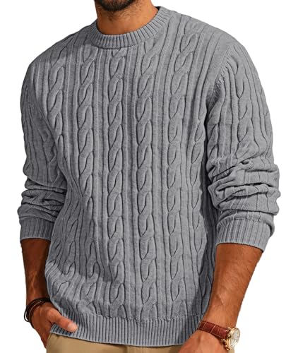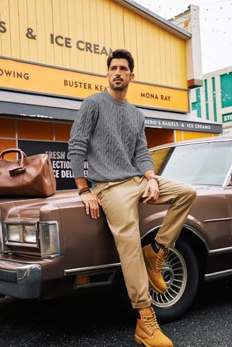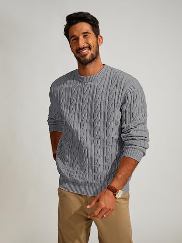 CLASSIC DESIGN: Featuring a timeless crew neck and cable knit design, this sweater is a stylish choice for any casual occasion. The ribbed neckline, cuffs and hem will keep its shape for durability, making it a reliable addition to your closet.