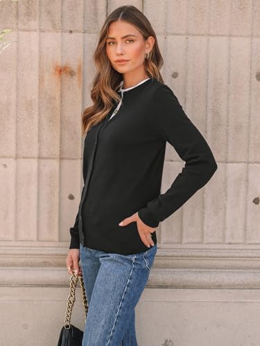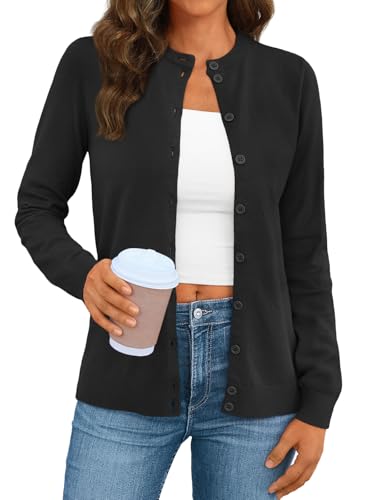 Features: long sleeves, button down front, ribbed bottom hemline and sleeve cuffs, solid plain color and short cardigan length,dressy and trendy casual look. This lightweight cardigan for women fall with a fitted design that flatters your figure.