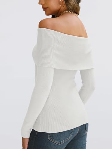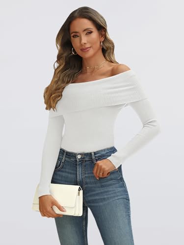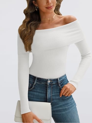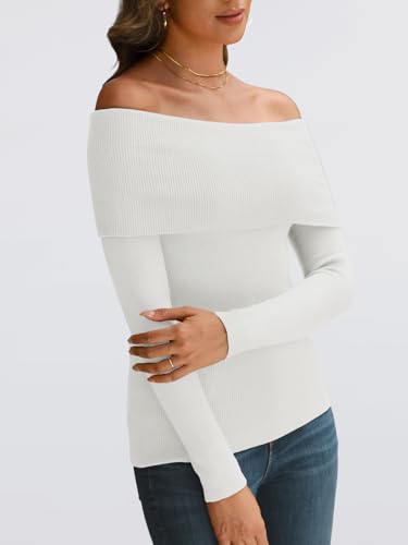 Design: Off the shoulder lapel design paired with long sleeves, slim and lightweight, allowing you to showcase your collarbone and neck lines. Ribbed knit design showcases your unique fashion style. The simple and classic solid color and stripe design never goes out of style